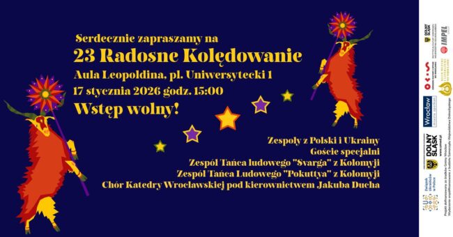 To będzie zakończenie okresu świątecznego kolędowania we Wrocławiu z przytupem. W sobotę, 17 stycznia polskie i ukraińskie zespoły spotkają się na Radosnym Kolędowaniu w ramach Wrocławskich Dni Jedności Chrześcijan. W Auli Leopoldyńskiej Uniwersytetu Wrocławskiego zabrzmią bożonarodzeniowe pieśni z obu krajów. Goście specjalni to Hucułowie z Kołomyi w Ukrainie. Wstęp na wydarzenie jest bezpłatny. Na koncercie…